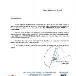 Orgullosos y agradecidos por el reconocimiento que nos entregará la Real Federación Española de Automovilismo tanto a Fátima como a mí por nuestros logros deportivos de 2024 #ERT FIA . Gracias Manuel Aviño !!