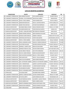 Publicamos la lista de inscritos, por orden alfabético, del XVIII Rallysprint La Candelaria, a celebrase los días 14 y I5 de febrero, en la isla de Lanzarote.