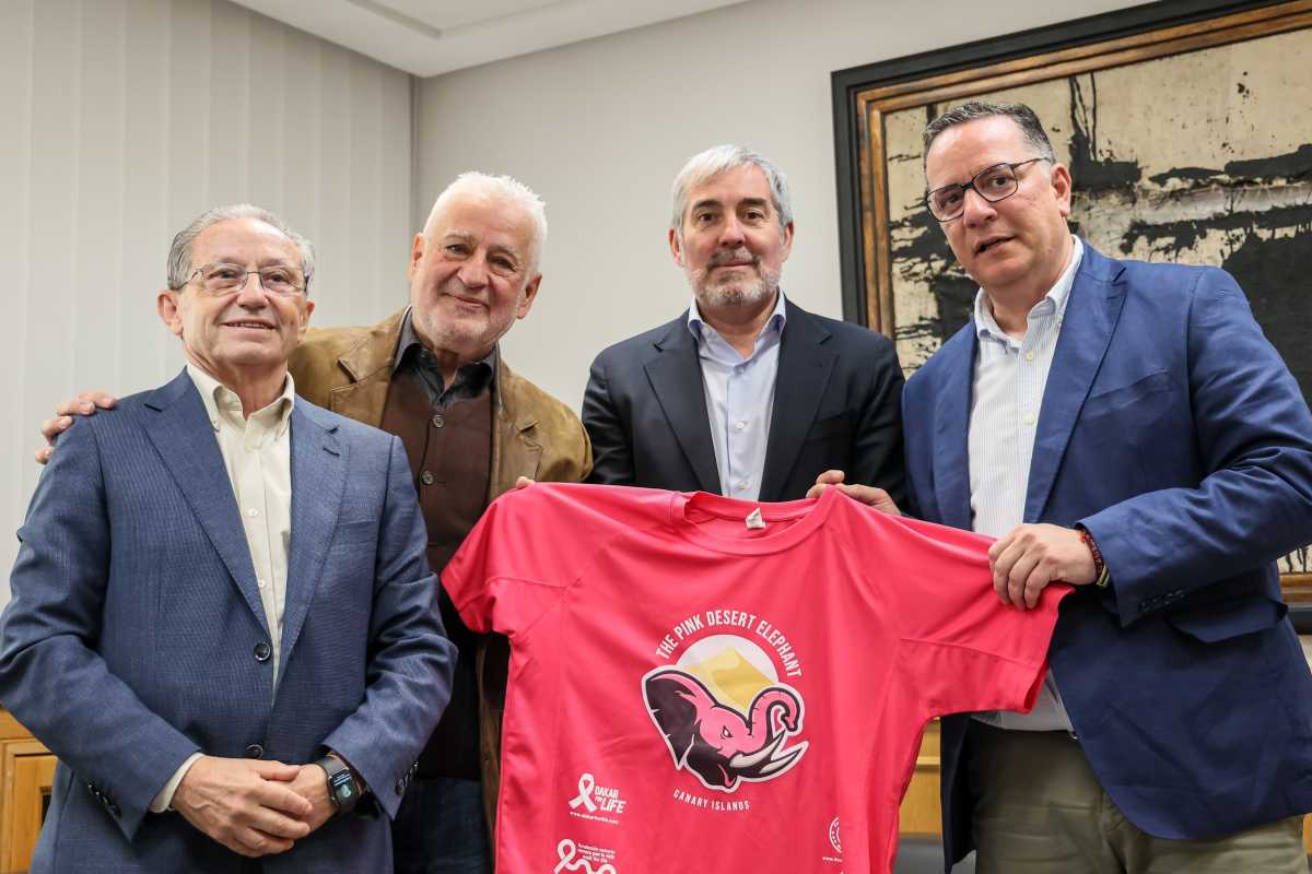 El presidente de Canarias, Fernando Clavijo, felicitó al piloto canario Rafael Lesmes, campeón por segundo año consecutivo del Dakar Classic en la categoría de camiones a los mandos del ‘Elefante Rosa’, un vehículo cuyo objetivo principal consiste en dar visibilidad a la importancia de la detección precoz del cáncer de mama tanto en mujeres como en hombres.