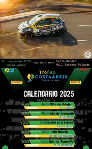 El amigo Pedro Donate y yo hemos llegado a un acuerdo para participar esta temporada en el Trofeo Costa Adeje dentro de la Copa Nissan Micra empezando en el próximo Rallye Villa de Adeje, continuando con el Granadilla, Ciudad de La Laguna, La Palma Isla Bonita e Isla de Tenerife.