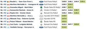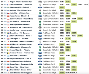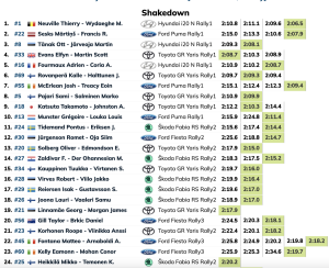 Elfyn Evans lideró el ataque de Toyota GAZOO Racing en quinta posición, superando a su compañero de equipo Kalle Rovanperä por seis décimas de segundo. El rookie de Puma Josh McErlean impresionó con su séptimo puesto por delante de Sami Pajari, mientras que Takamoto Katsuta y Grégoire Munster completaron el top 10.