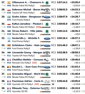 Mārtiņš Sesks ofreció una sólida actuación en su regreso al WRC, asegurándose la sexta plaza como mejor entre los M-Sport Ford. El letón terminó el rallye 17,6 segundos por delante de Sami Pajari, de Toyota, mientras que Josh McErlean, que había sido octavo, descendió posiciones después de que su Puma Rally1 se quedara atascado en un talud de nieve en el primer tramo del día.