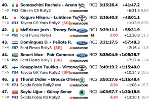 Grégoire Munster heredó la octava posición de su compañero McErlean, mientras que los líderes del WRC2, Oliver Solberg y Roope Korhonen, completaron el top 10.