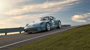El coche está equipado con el paquete opcional Heritage Design, que celebra los 60 años del Porsche 911. Pintadas en Azul Shore Metalizado, un color exclusivo de este paquete, las llantas son de color Ceramica, también reservado exclusivamente para esta variante. El escudo Porsche de estilo clásico del 911 original adorna el frontal, y también se puede encontrar en los tapacubos centrales de las ruedas, el volante, los reposacabezas y la llave del coche, subrayando las raíces históricas del 911 S/T, que permanece sin matricular y está propulsado por un motor atmosférico de seis cilindros bóxer de 4,0 litros que desarrolla 518 CV, conectado a una caja de cambios manual de seis velocidades.