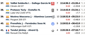 Al final de la etapa, pese al primer scratch con un Rally2 en el asfalto del joven piloto catalán de 17 años Gil Membrado en el último tramo del día, Herczig tenía una ventaja de menos de 20” sobre Jordan Berfa y Kévin Mendrico. Los franceses, con un Hyundai i20 R5, habían comenzado el rally como líderes pero fueron distanciándose poco a poco del húngaro. Hasta ese momento, Gil Membrado y Jandrín López se encontraban en el tercer puesto a la espera de la segunda jornada.