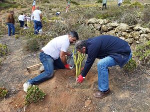 Este sábado se realizó la prevista Jornada Ambiental organizada por el CD. Evesport y la colaboración de Foresta, con una plantación en el Valle de Malpaso, en las inmediaciones de la popular subida automovilística de Haría. Tabaibas, verodes y dragos fueron los protagonistas de la acción para compensar la huella de carbono que deja nuestro deporte, en este caso del pasado Rallye Isla de los Volcanes-Trofeo Ciudad de Arrecife.