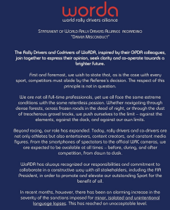 DECLARACIÓN DE LA ALIANZA MUNDIAL DE PILOTOS DE RALLY SOBRE “MALA CONDUCTA DEL CONDUCTOR”