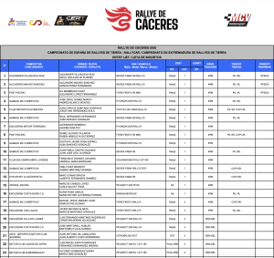 Publicamos la lista de inscritos del Rally de Cáceres, primera cita del Campeonato de España de Rallys de Tierra (CERT) 2025.