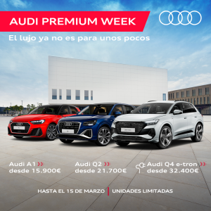 Audi Premium Week también es una oportunidad inmejorable para dar el salto a la movilidad eléctrica premium, de la mano de la tecnología de vanguardia y la calidad que caracterizan a la marca de los cuatro aros. Durante la promoción, el Audi Q4 e-tron, un SUV 100% eléctrico que combina diseño, conectividad avanzada y hasta 720 kilómetros de autonomía en ciudad, puede ser tuyo desde 32.400 euros.
