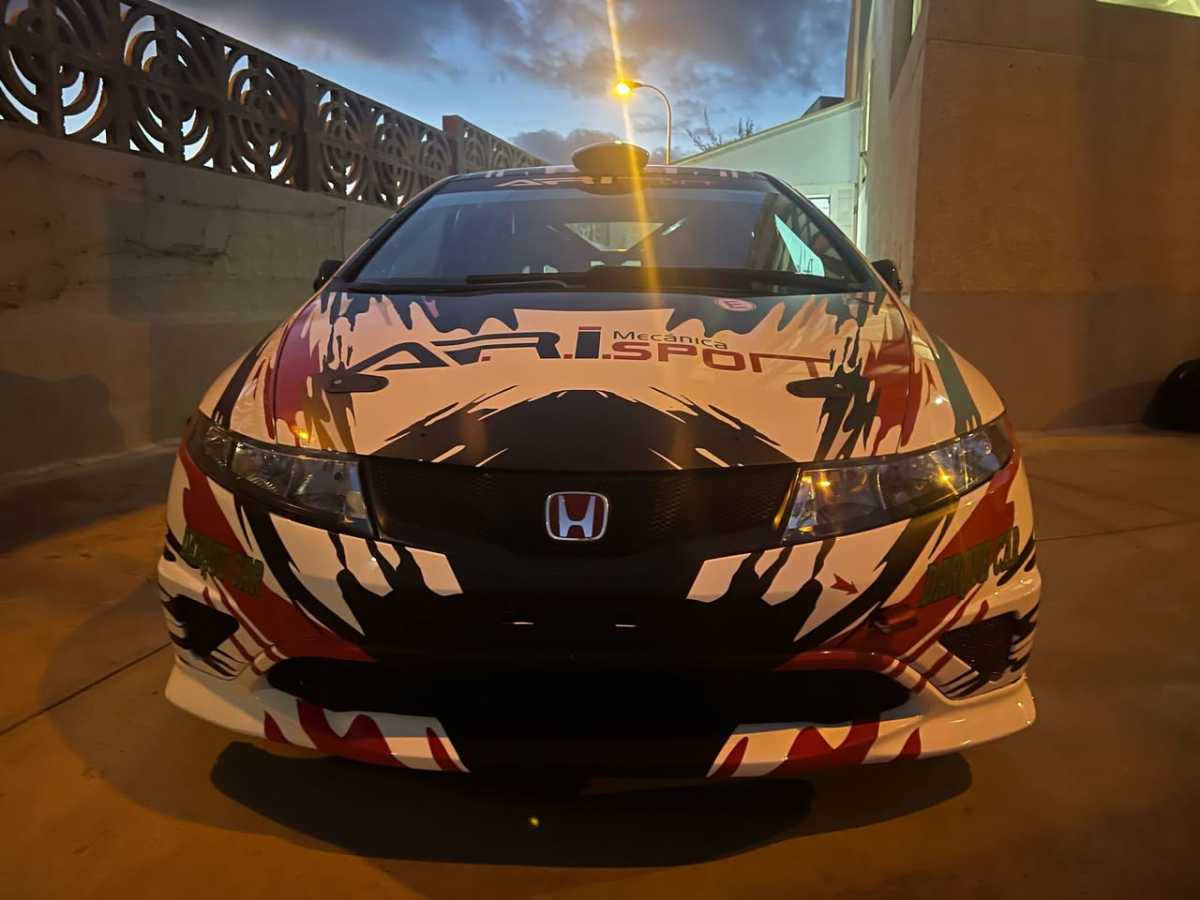 El rotulista Acorán Navarro trabajó en el Honda Civic Type R R3 de su paisano Aridany Ojeda, unidad con la que correrá en el próximo Rally Villa de Santa Brígida.