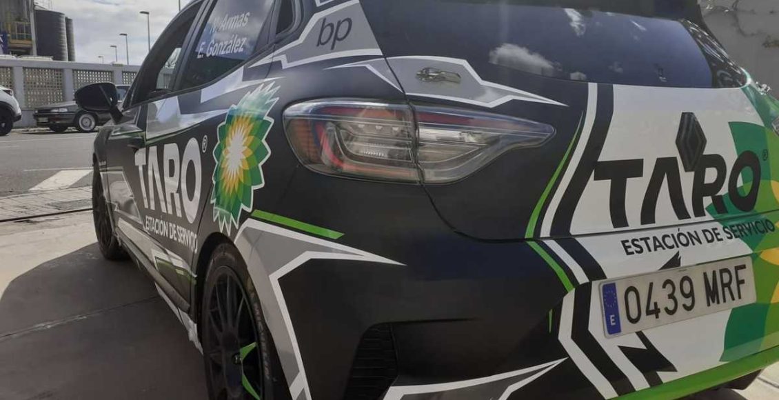 El rotulista grancanario Acorán Navarro realizó el trabajo de rotulación del Renault Clio Rally4 con el que competirá esta temporada 2025 Noé Armas.
