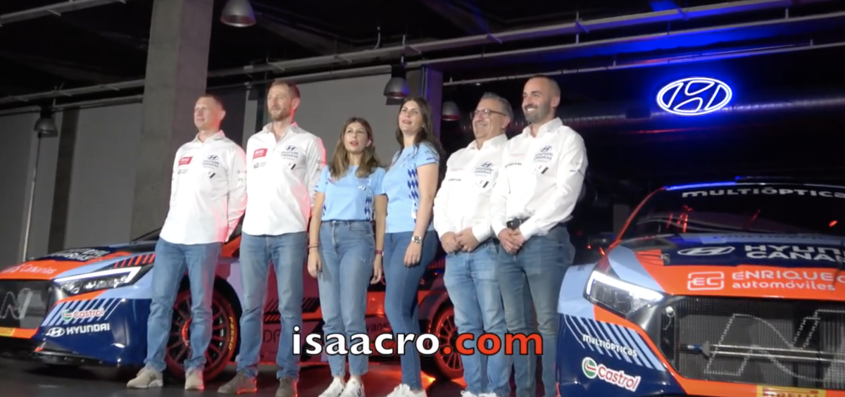 Publicamos el vídeo realizado por parte de Isaac Rodríguez de la presentación del equipo Hyundai Canarias 2025 con los equipos compuestos por Alexey Lukyanuk – Yuri Kuliko y Fernando Cruz – Juan Ricardo Luis, ambos a los mandos de sendos Hyundai i20 N Rally2.