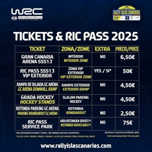 La organización del Rally Islas Canarias ha sacado los precios de las entradas de los tramos espectáculo de la cita con sede en la isla de Gran Canaria.
