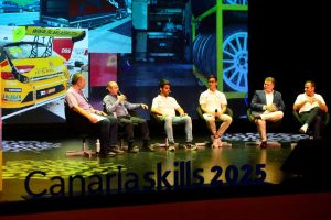En el marco de «Canarias Skills» que se viene desarrollando en Expomeloneras hoy y mañana, la Federación Canaria de Automovilismo participa con un stand y una charla de promoción del motorsport como una salida laboral de futuro para los miles de jóvenes que estudian formación profesional en nuestras islas, especialmente los del ramo de automoción. Miles de estudiantes están pasando por este gran escaparate de la formación profesional en Canarias, con el objetivo de orientar su futuro. El mundo del motor tuvo su espacio con una mesa redonda divulgativa que tuvo un importante seguimiento y un stand de competición junto al resto de especialidades de la automoción.
