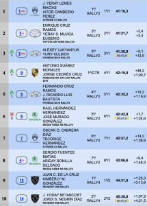 Quintos acabaron Fernando Cruz – José Ricardo Luis en su primer rally con el Hyundai i20 N Rally2), favoreciéndose de la pérdida de tiempo de Raúl Hernández – José Murado sextos a 7.7 del quinto puesto. Séptimos son Óscar Cabrera – Teco Hernández (Citroën C3 Rally2) en una carrera donde tuvieron grandes momentos, seguidos de Sergio Fuentes y Ariday Bonilla en su estreno con el Skoda Fabia RS Rally2, octavos.