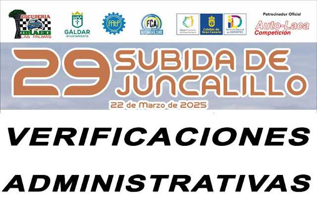 Las Verificaciones Administrativas Obligatorias de la 29ª Subida de Juncalillo tendrán lugar este jueves, 20 de marzo, en la sede de la Escudería Drago – Club del Automóvil Antiguo de Las Palmas en la C/ Arrecife, 27 Las Torres – Las Palmas, (bajos del supermercado Cash Diplo), mañana jueves día 20 de marzo de 19:30 h a 21:00 h.
