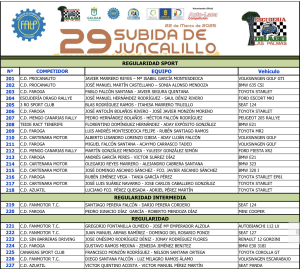 La Escudería Dragoha publicado la lista oficial de Inscritos de la 29ª Subida de Juncalillo, primera cita del Campeonato de Las Palmas de montaña 2025.