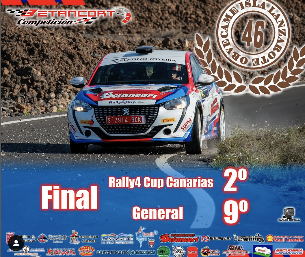 Yoday Betancort y Jordi Negrín (Peugeot 208 Rally4) empezaron el 46 Rally Isla de Lanzarote sufriendo una penalización de cinco segundo por tocar una chicane, pero esto no les descentró para terminar la primera cita del Campeonato de Canarias, Las Palmas y Lanzarote como novenos de la general, segundos de la Rally4 Cup Canarias, Grupo Rally4, Categoría 2, además de vencer en la Promoción FALP y Volante FALP.