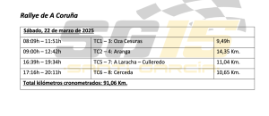 La carrera coruñesa, será la tercera de García a bordo de un vehículo de la categoría Rally2, logrando rodar de forma consistente entre los mejores del Campeonato Gallego de Rallies en las dos citas anteriores, que fueron A Coruña y el Rallye San Froilán respectivamente.