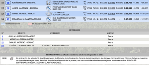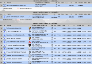 Cuarto acabó Alejandro Suárez (Mitsubishi Lancer Evo IX), seguido de Felipe González (Peugeot 206 RC), quinto.