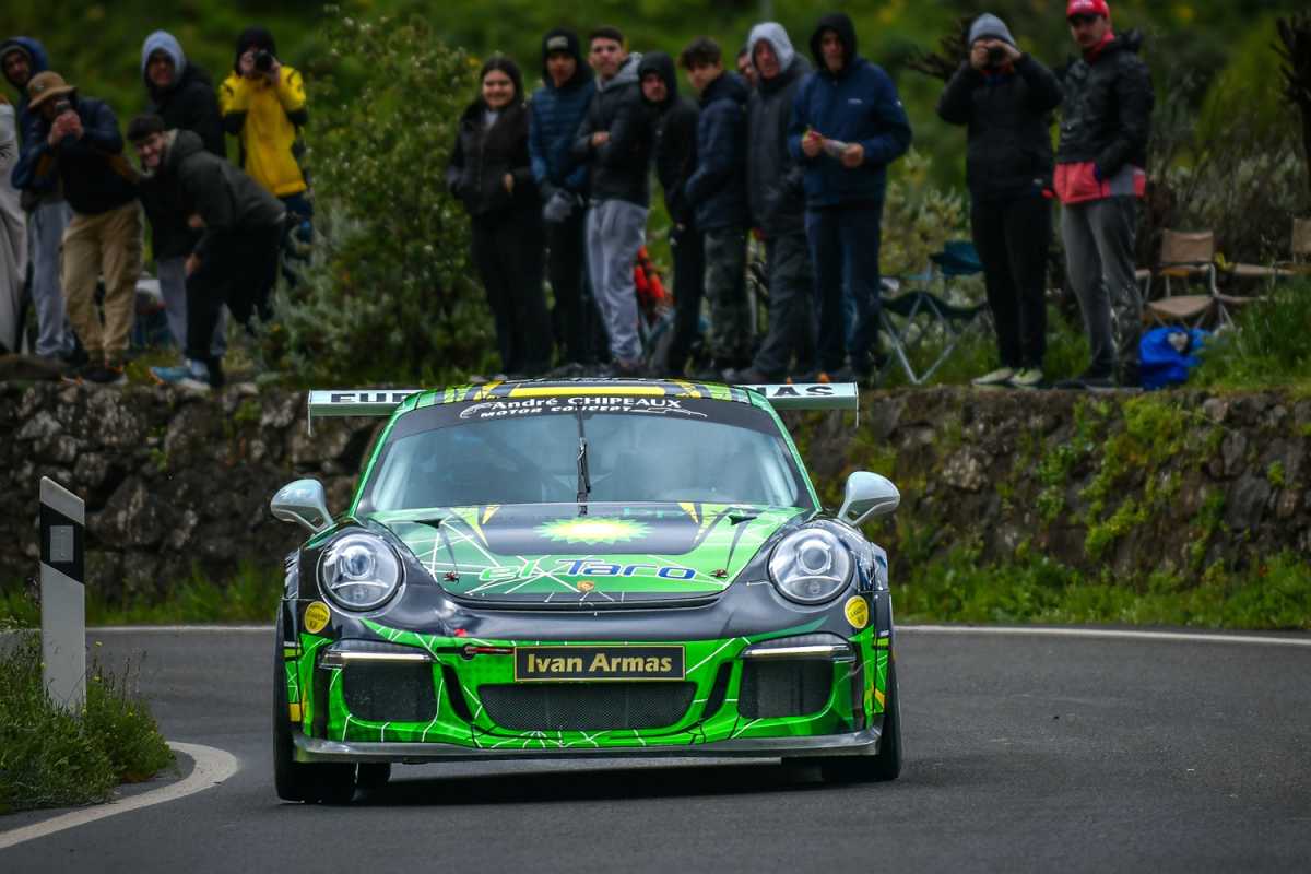 Los cambios en las condiciones del asfalto fueron una constante, circunstancia que obligó a los participantes a establecer un tiempo competitivo lo antes posible. La carretera lucía mayoritariamente seca en la primera manga oficial, en la que Armas impuso su Porsche 991.1 GT3. Ese tiempo le acabó otorgando la victoria en la rampa galdense. Nadie pudo mejorar en la última intentona debido al regreso de las precipitaciones y una densa niebla.