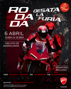 Además, para empezar el día con la máxima energía, Ducati Canarias ofrecerá un desayuno a todos los asistentes, creando el ambiente perfecto para compartir expectativas, conocerse y calentar motores antes de salir a pista.