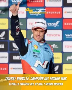 Thierry Neuville, campeón del mundo WRC, estará en Córdoba como estrella invitada. Correrá en el Rally Sierra Morena 2025 al volante de su Hyundai i20N Rally1.