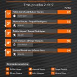 Por detrás, Pablo Sánchez realizó una actuación muy regular para asentarse en la segunda posición, mientras en el último peldaño del podio había alternativas, con un Samuel Fernández que ocupaba la tercera plaza al llegar al ecuador de la prueba, pero que no pudo contener los ataques de Daniel Gorín en primera instancia, y Sergio Sánchez en segunda, los dos tratando de remontar sendas penalizaciones para terminar cuarto y tercero respectivamente. La segunda posición de Sánchez le permite ascender a la primera plaza del certamen gracias a su regularidad, mientras Toñito López, acompañado por Raquel Rodríguez (que ya ganó en Lalín acompañado a Manuel Souto), se hizo con un holgado triunfo tras marcar todos los scratchs del día.