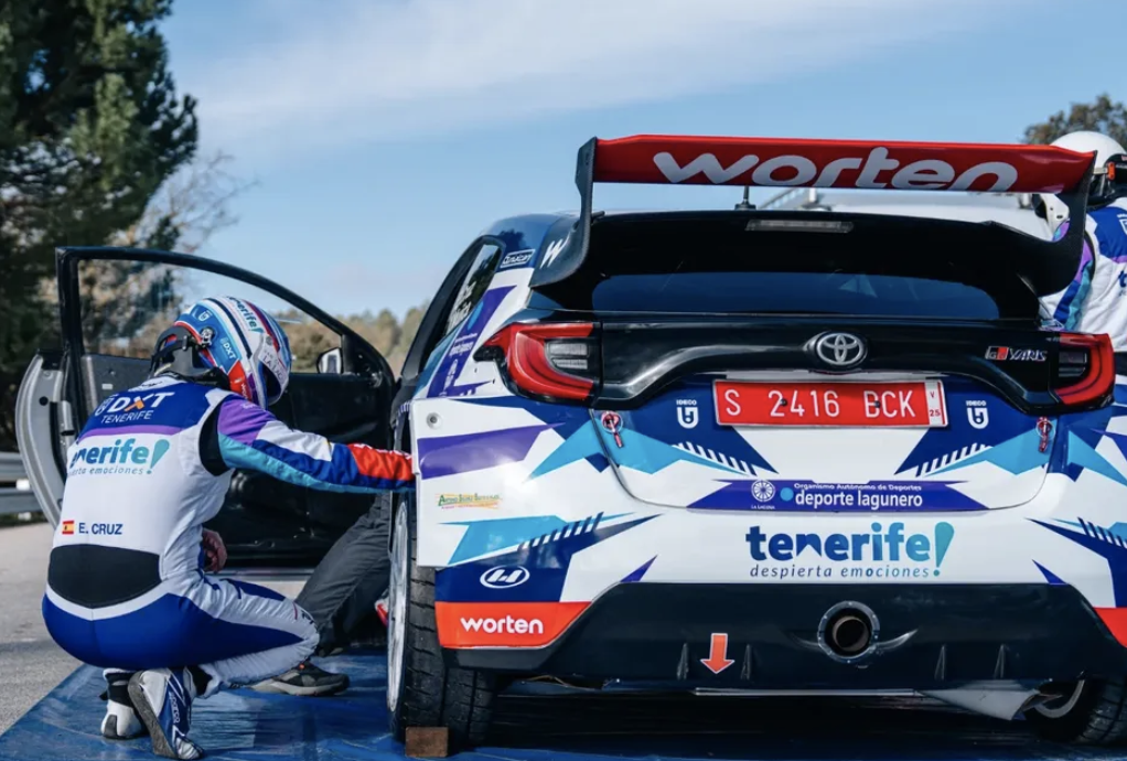 El tinerfeño Enrique Cruz y el grancanario Yeray Mujica, después de haber competido en el Rally Isla de Lanzarote a los mandos del Toyota GR Yaris Rally2 del equipo Copi Sport, este jueves han tenido la oportunidad de rodar por primera vez en los test previos al Rally La Llana con la unidad con la que competirán en el Campeonato de España de Rallys de Asfalto (CERA).