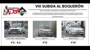 La Escudería Derecha3Kmotor estuvo presente con tres equipos en la VIII edición de la Subida al Boquerón, que se disputó los días 21 y 22 de marzo, siendo organizada por la Escudería Sport Eventos Tenerife.