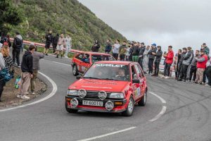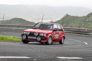 Eduardo Jesús Melián y Fani Brito se cambiaron de asiento en el Toyota Starlet para competir en la Subida al Boquerón 2025. A pesar de la lluvia, pudieron sacar adelante su participación.