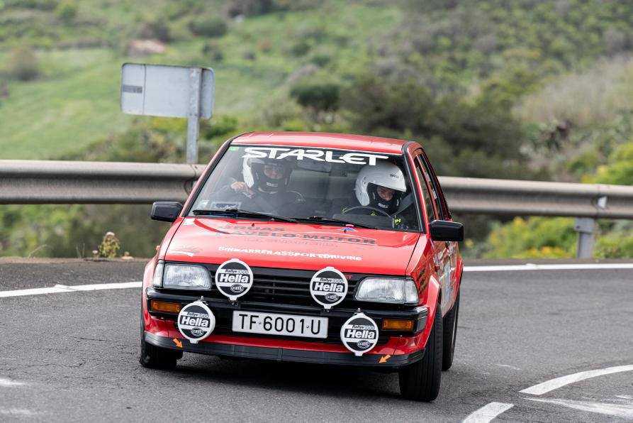Eduardo Jesús Melián y Fani Brito se cambiaron de asiento en el Toyota Starlet para competir en la Subida al Boquerón 2025. A pesar de la lluvia, pudieron sacar adelante su participación.