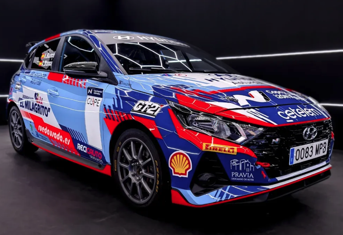 La empresa de diseño Tangente ha presentado la rotulación del Hyundai i20N con el que correrán esta temporada 2025 Adrián Blanco y Andrés Blanco.