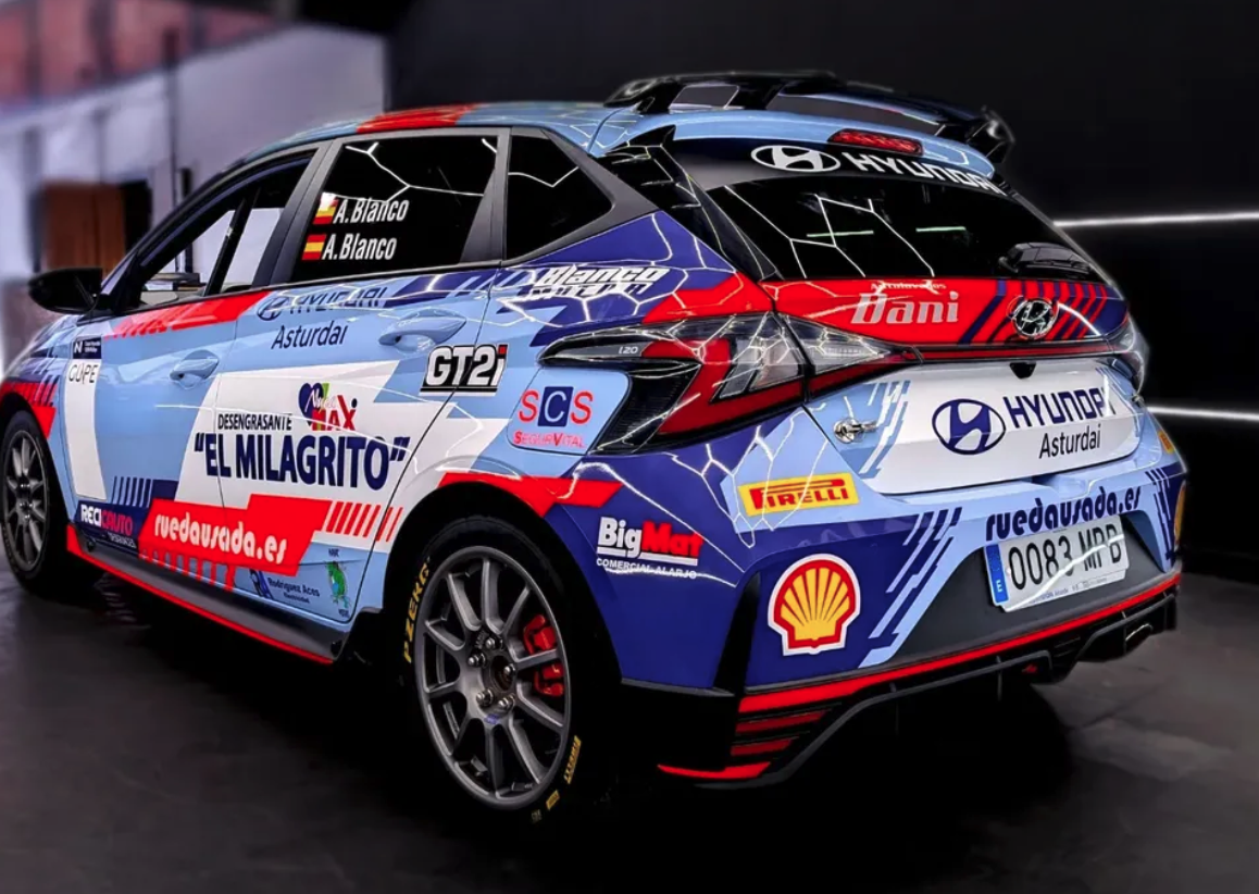 Diseño y rotulación del Hyundai i20N de @adriaanblaanco y @andressblanco_ para este 2025 en la copa i20N Rallye.