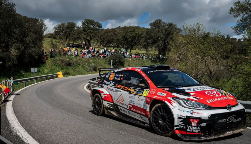 Sobresaliente actuación del asturiano Alejandro Cachón y el madrileño Borja Rozada (Toyota GR Yaris Rally2) en el Rally Sierra Morena, donde rodaron en gran parte de la prueba andaluza, esta temporada 2025 valedera para el Campeonato de Europa de Rallys (ERC) y SuperCampeonato de España (ERC) en la tercera posición, justo detrás de las dos unidades Rally1 del WRC presentes y como primeros de todos los Rally1, hasta que tomaron la decisión de abandonar.