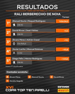 El Rali Berberecho de Noia puso fin a un inicio fulgurante de temporada con tres citas en apenas un mes, tras el cual se postulan los equipos que pueden luchar por el título en ambas divisiones de la Copa Top Ten Pirelli.