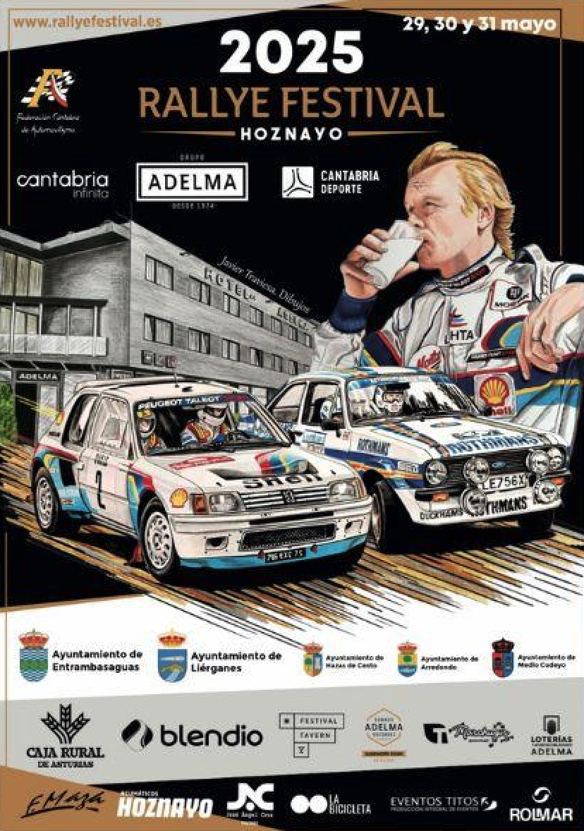 Desde la organización del Rallye Festival Hoznayo tenemos el placer de presentar el cartel oficial de la edición 2025, una auténtica obra de arte firmada, como ya es tradición, por los lápices del gran Javier Traviesa.