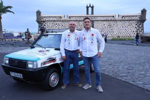 Luis y Pedro, dos jóvenes de Lanzarote atraídos por el espíritu de aventura, los valores deportivos y, sobre todo, humanos que esta carrera propone, unido para afrontar el reto de llegar con el Fiat Panda 4X4 y así poder cumplir el sueño de representar a nuestro archipiélago de una forma diferente y solidaria.