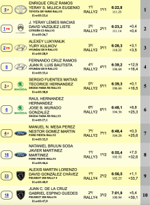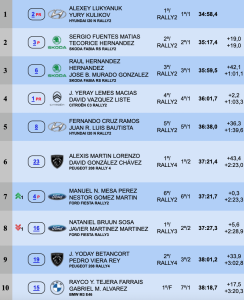 Novenos fueron Alexis Martín-Josué Méndez (Peugeot 208 Rally4), sextos de la general, pero con sólo 0.3 sobre Mesa y Gómez