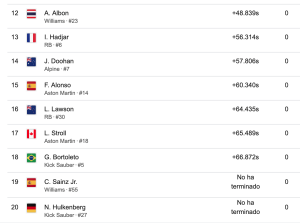 En cuanto a la actuación de los pilotos españoles, Carlos Sainz abandonó y Fernando Alonso fue décimo quinto.
