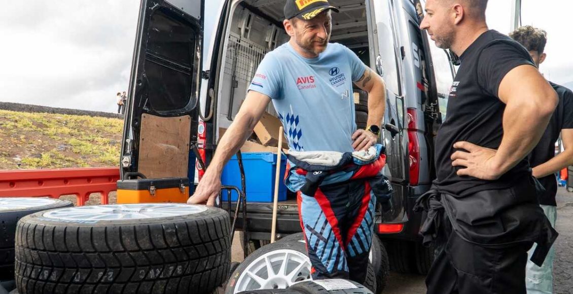 Aitor Cambeiro, uno de los responsables de la estructura lanzaroteña Sports And You Canarias, encargada de llevar las dos unidades de Hyundai Canarias, lamenta el robo del alerón del Hyundai i20 Rally2 del piloto ruso Alexey Lukuyanuk después del accidente que sufría el entonces líder del Rally Norte de Tenerife 2025.