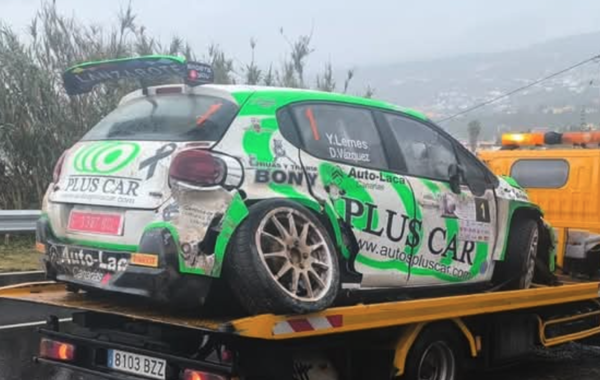 El accidente que sufrieron Yeray Lemes y David Vázquez con el Citroën C3 Rally2 en el penúltimo tramo del Rally Norte de Tenerife, cuando eran terceros de la segunda cita del Campeonato de Canarias de Rallys de Asfalto (CCRA) ha dejado seriamente dañada a la unidad asistida y mantenida por la estructura Sports And You Canarias.