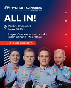 El próximo marte es el día elegido por Hyundai Canarias para presentar alos pilotos del equipo Hyundai Shell Mobis WRT que correrán el Rally Islas Canarias 2025.