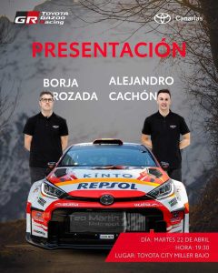 No te pierdas la presentación de Borja Rozada y Alejandro Cachón, acompañados de su impresionante Toyota GR Yaris Rally2.