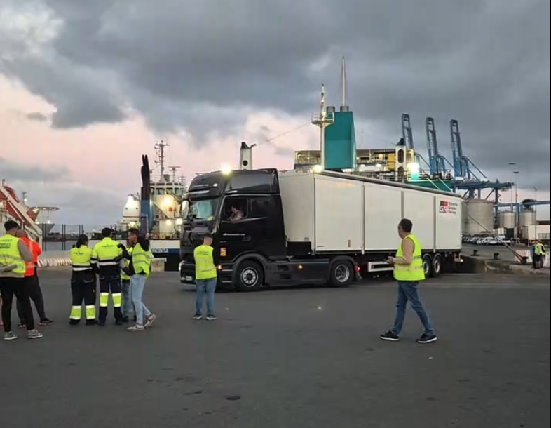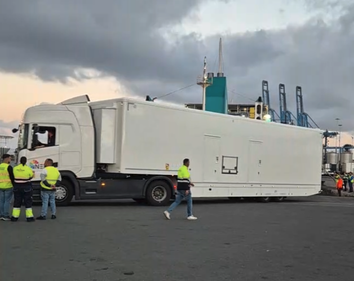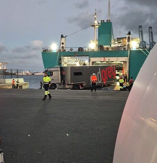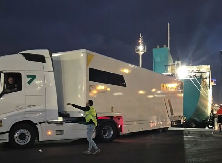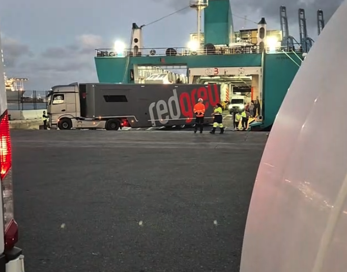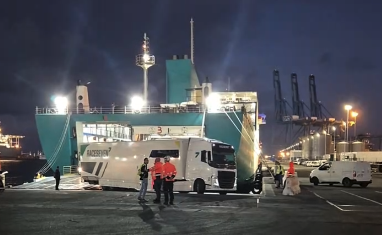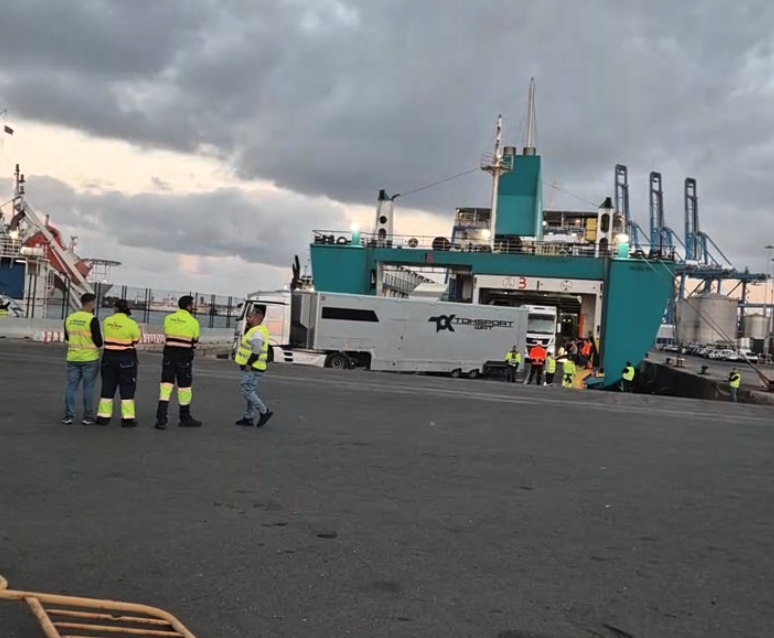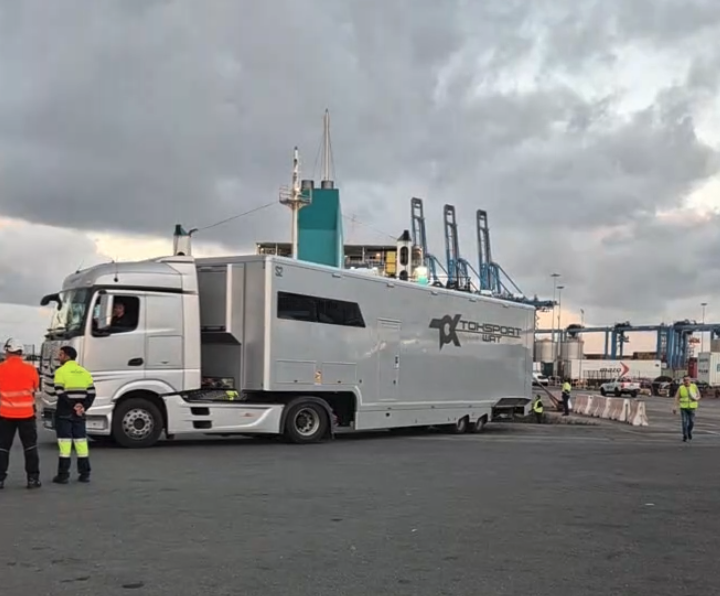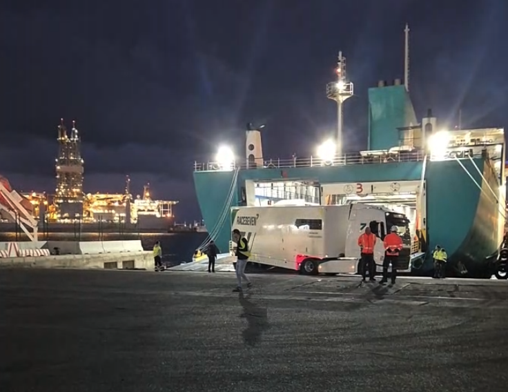 Gracias a Uno en Pista «El Fabuloso Mundo del Motor» y a las redes de la prueba pudimos ver las imágenes de los trailers arribando en la isla.