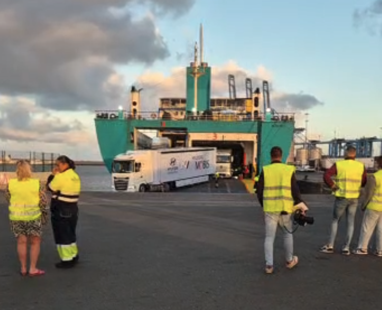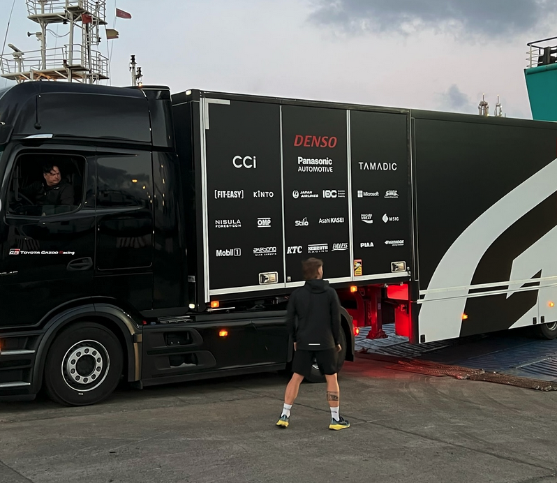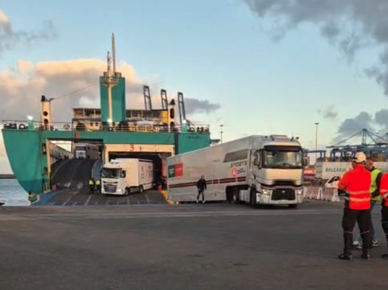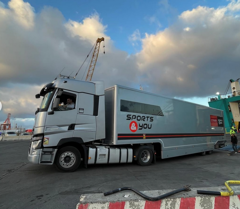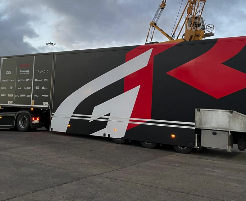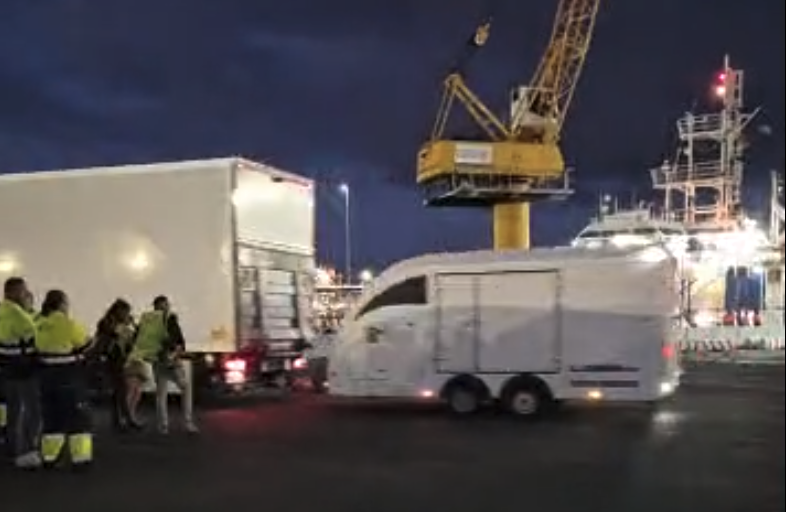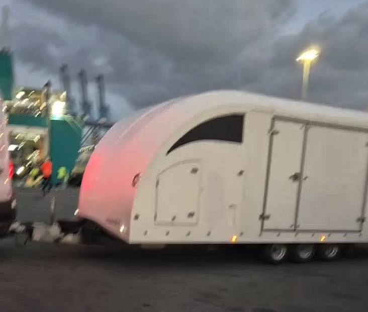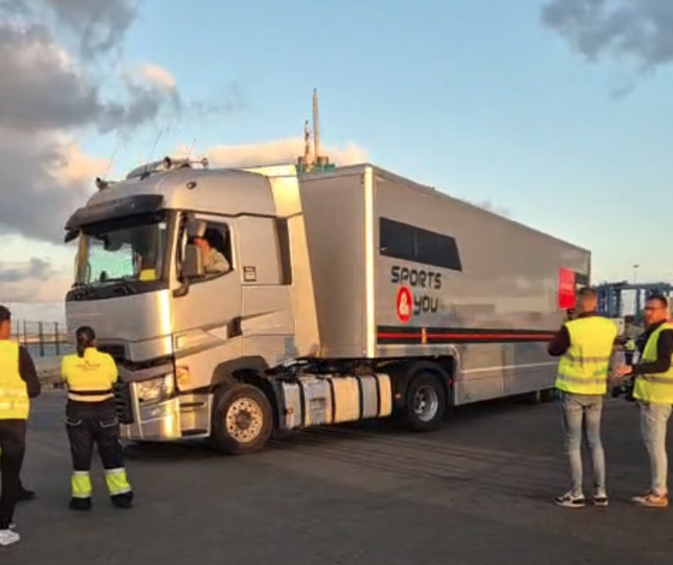 Gracias a Uno en Pista «El Fabuloso Mundo del Motor» y a las redes de la prueba pudimos ver las imágenes de los trailers arribando en la isla.