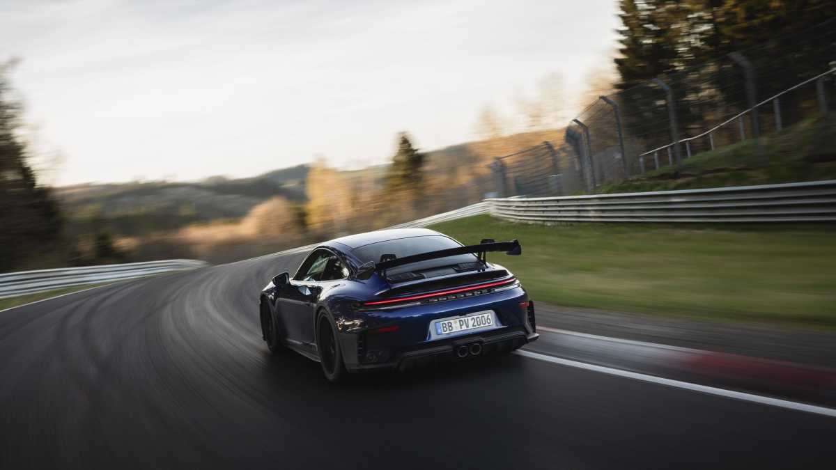 “Cuando decidimos establecer el récord oficial del nuevo 911 GT3 con cambio manual, naturalmente miramos quién estaba en lo más alto de la clasificación”, afirma Preuninger. Ese competidor necesitó 7:01.300 minutos para completar una vuelta a la versión reducida de 20,6 kilómetros del circuito. Esto equivaldría aproximadamente a 7:05.800 minutos en la vuelta completa de 20,832 kilómetros. Este era el tiempo a batir. Bajo certificación notarial, el cronómetro se detuvo en 6:56.294 minutos para el nuevo 911 GT3, mejorando el récord anterior en más de 9,5 segundos.