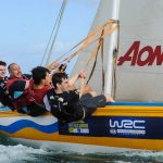 La actividad promocional, que ha organizado WRC Promoter en colaboración con la Federación de Vela Latina Canaria de Botes, ha contado con la participación de pilotos tan reconocidos como el campeón del Mundo de Rallies de 2019, Ott Tänak, que ha dado la victoria al equipo Hyundai Motorsport, conjuntamente con su copiloto, Martin Järveoja.