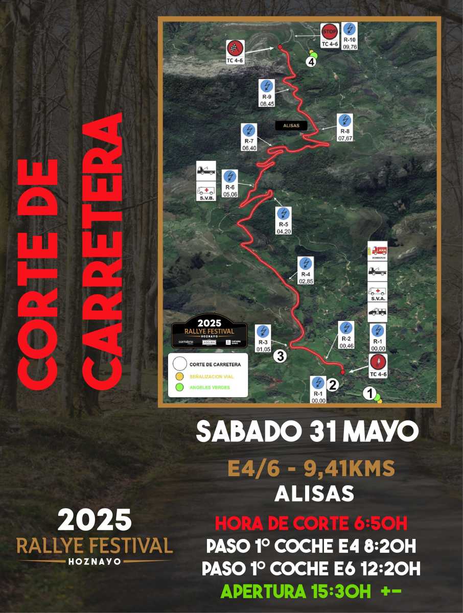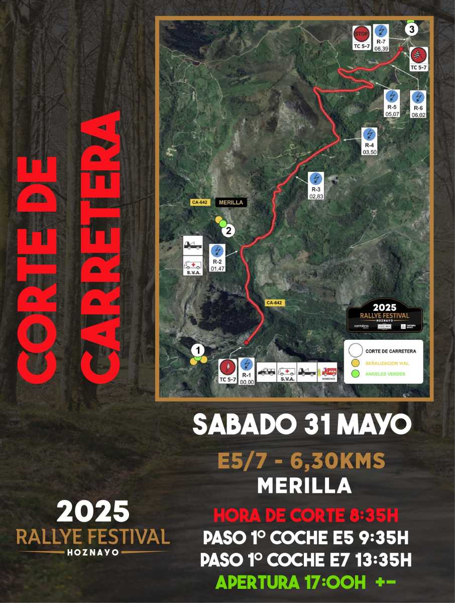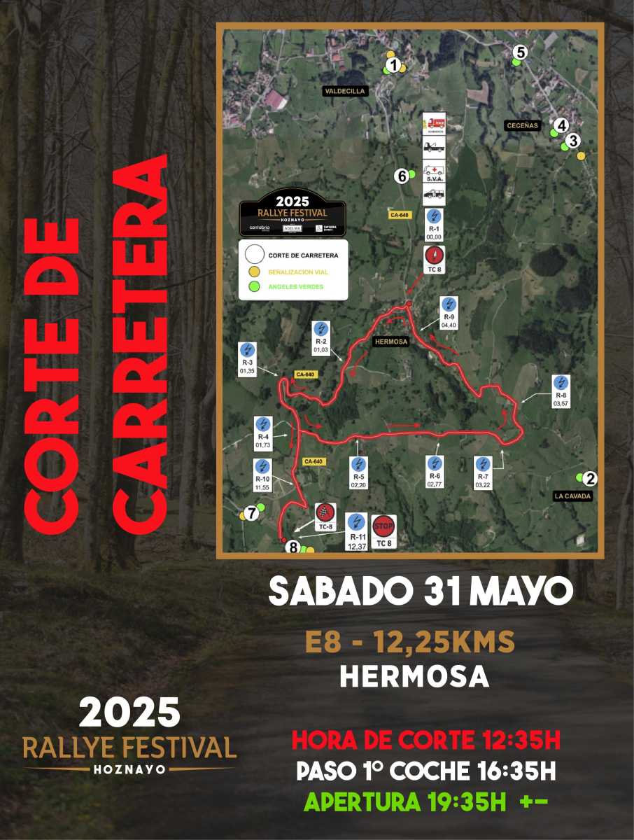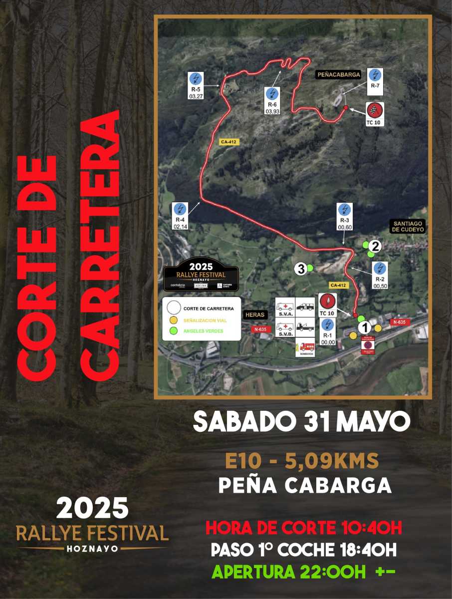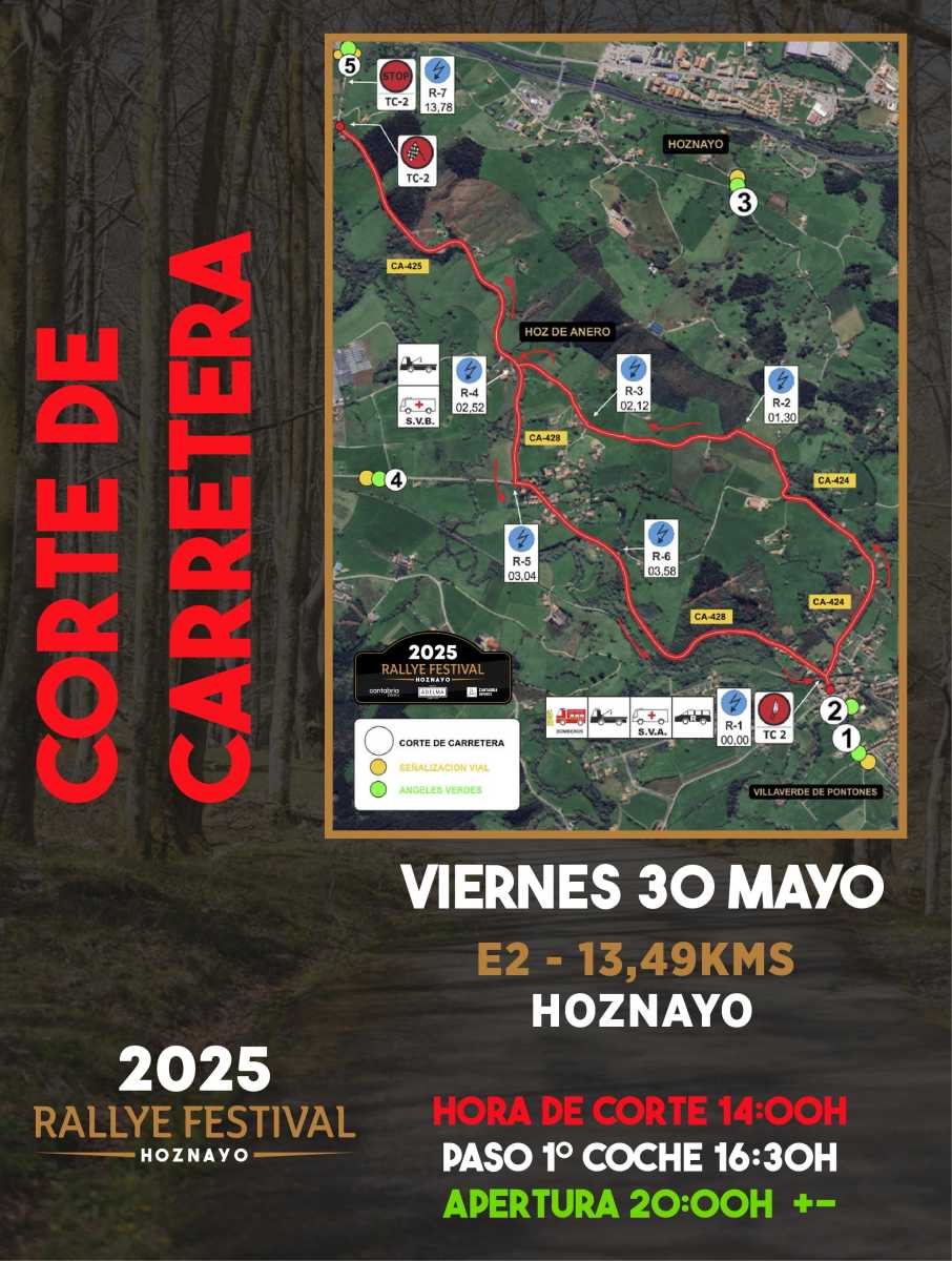 Publicamos los horarios de los cortes de carretera de esta edición del Rallye Festival Hoznayo 2025.