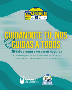 La Federación Canaria de Automovilismo en colaboración con el Gobierno de Canarias a través de su Viceconsejería de la Actividad Física y el Deporte inicia hoy una campaña para mentalizar al público asistente a los rallys de la importancia en respetar las normas de seguridad y las indicaciones de los miembros de la organización.